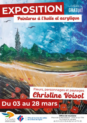 Venez découvrir les peintures à l'huile et acrylique de Christine Voisot à travers l'exposition "Fleurs, personnages et paysages"