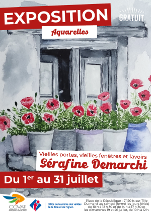 Découvrez les "Vieilles portes, vieilles fenêtres et lavoirs", une exposition d'aquarelles par Sérafine Demarchi.